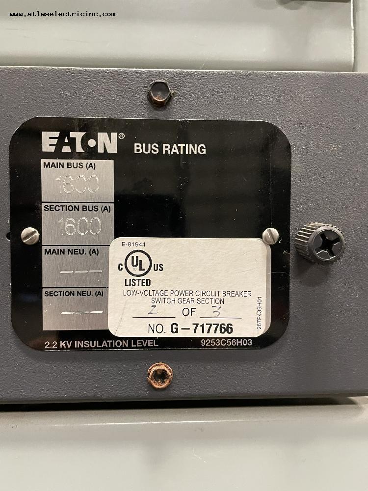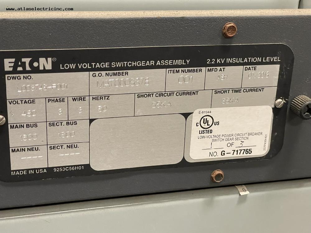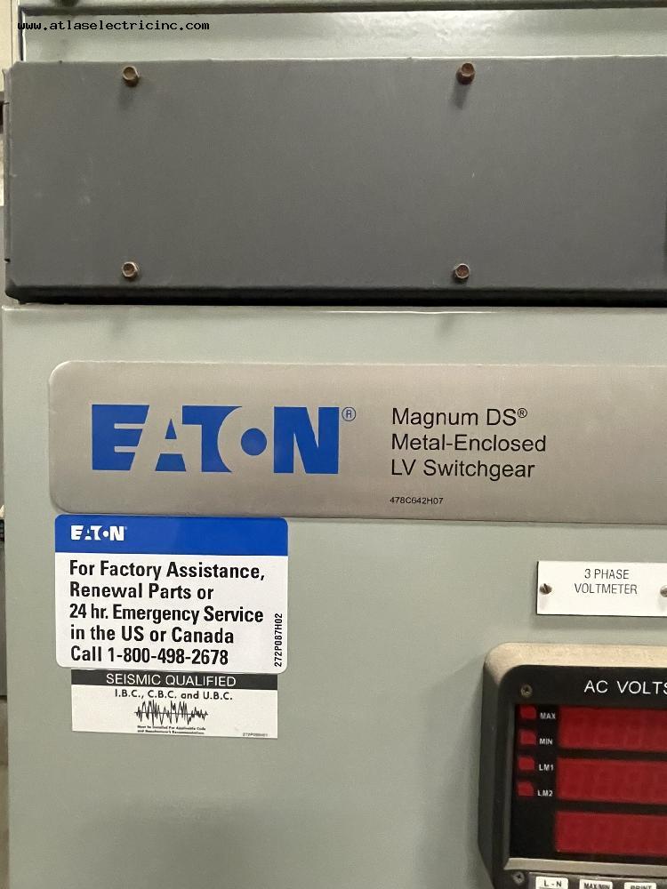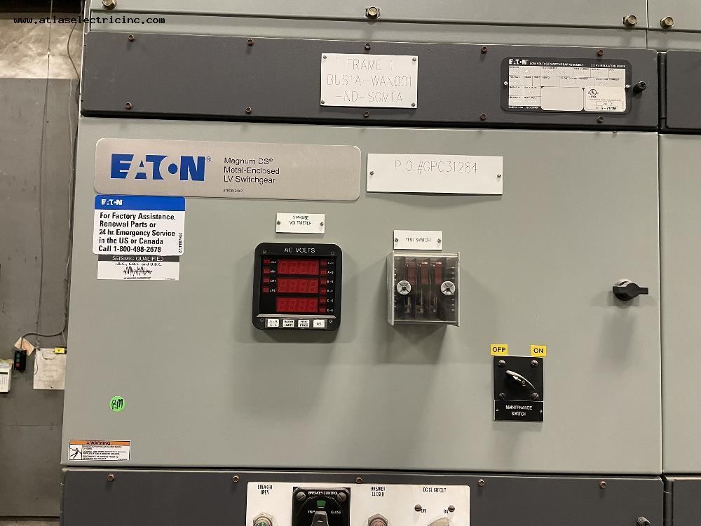 Stock Number LVSG00009Details Eaton 1600 Amp MAGNUM DS LV Switchgear 480 Volt Manufacturer Eaton Amp Rating 1600 Number of Sections 2 Main Breaker 1600 Enclosure N1 800Amp Feeder 1600Amp Feeder ICCB00295 3200Amp Feeder Date Manufactured 0000-00-00 00:00:00 Product Photos