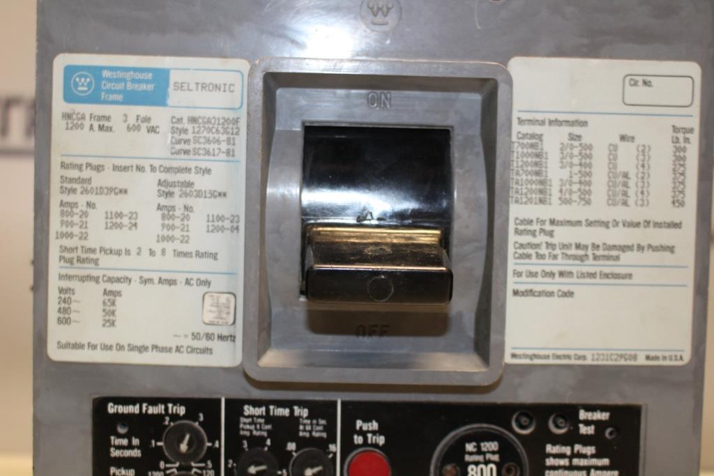 Westinghouse HNCGA31200F Molded Case Circuit Breaker 1200 Amp 600 Volt