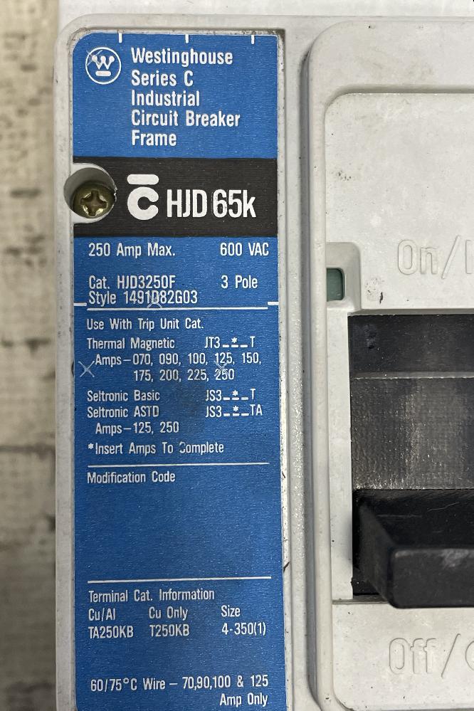 Westinghouse HJD3250F Molded Case Circuit Breaker 150 Amp Trip JT3150T 600VAC/250VDC Volt