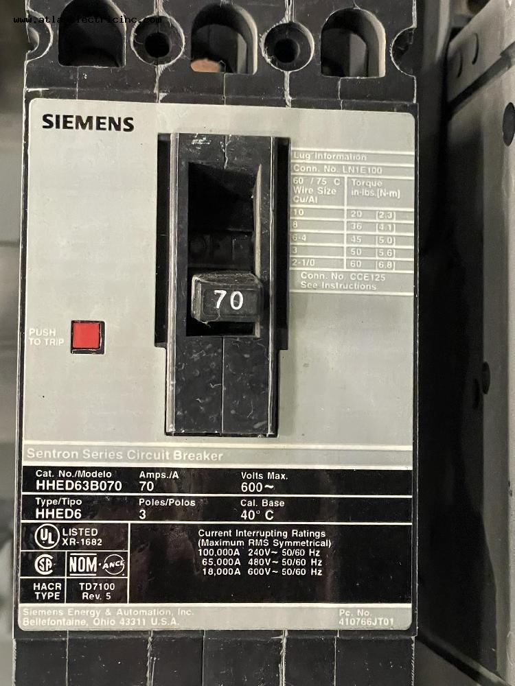 Siemens HHED63B070 Molded Case Circuit Breaker 70 Amp 600 Volt