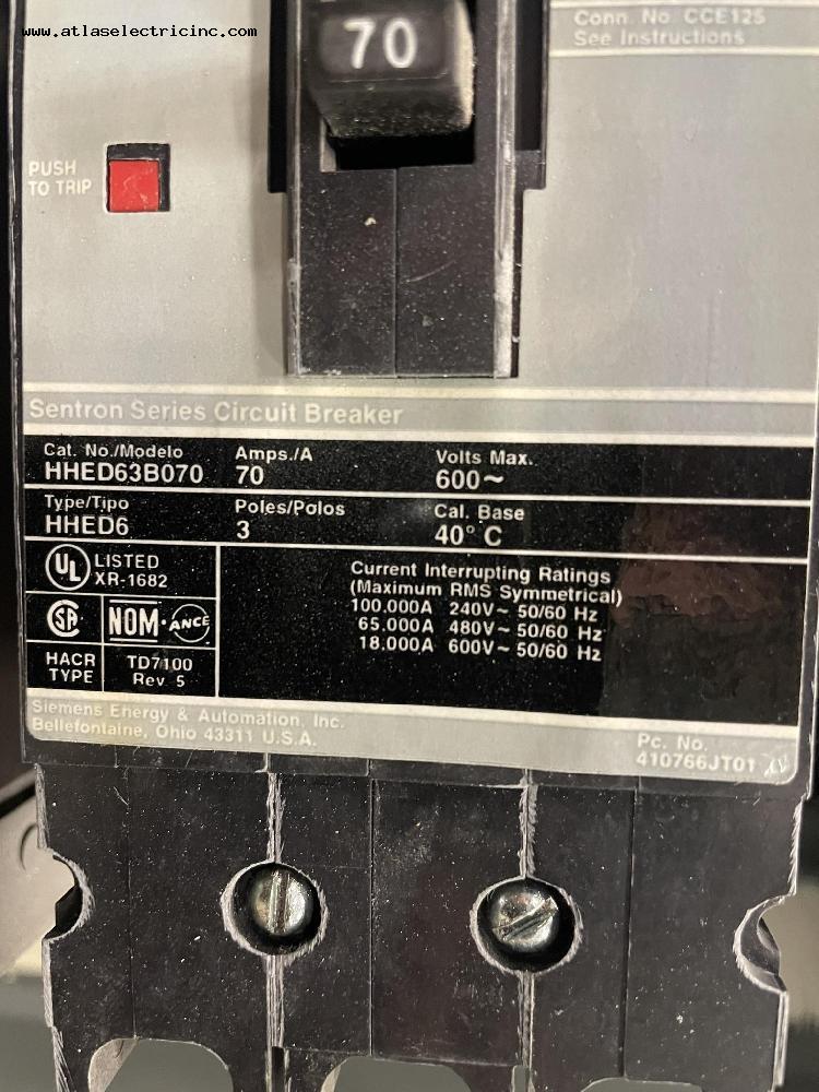 Siemens HHED63B070 Molded Case Circuit Breaker 70 Amp 600 Volt