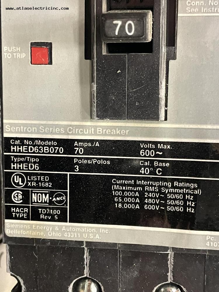 Siemens HHED63B070 Molded Case Circuit Breaker 70 Amp 600 Volt