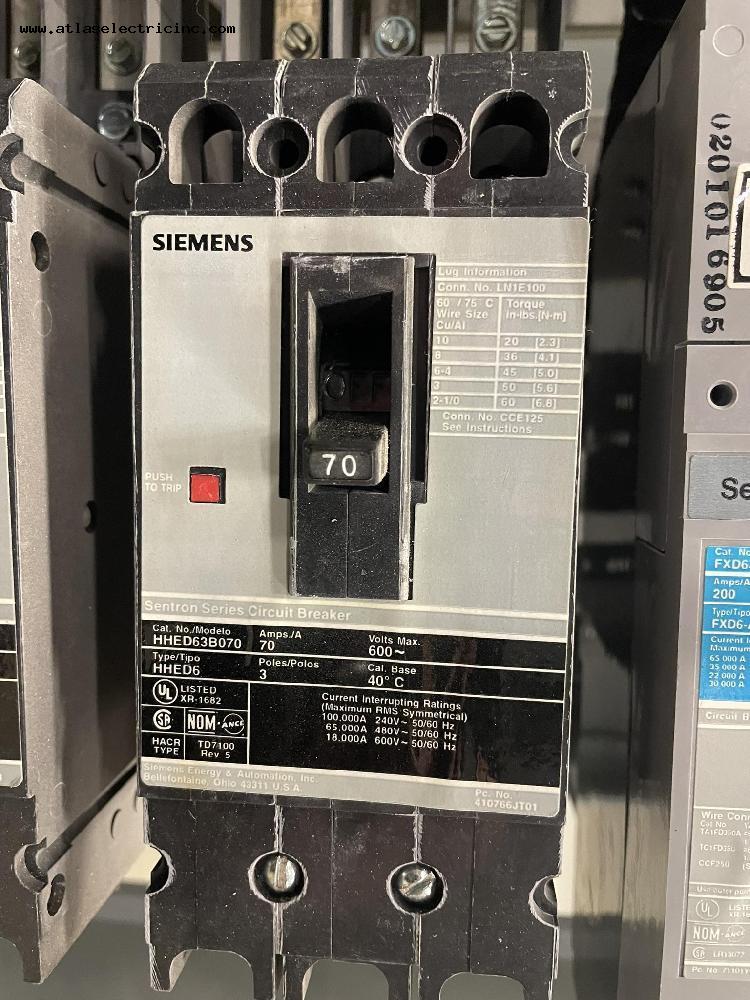 Siemens HHED63B070 Molded Case Circuit Breaker 70 Amp 600 Volt