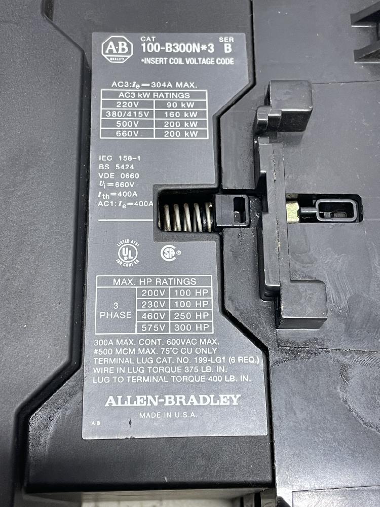Allen Bradley IEC CONTACTOR Motor Starter Catalog Number 100-B300N*3 300HP